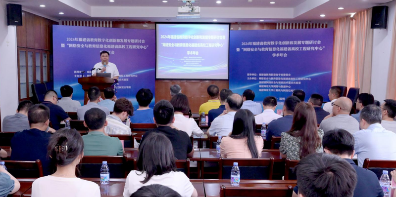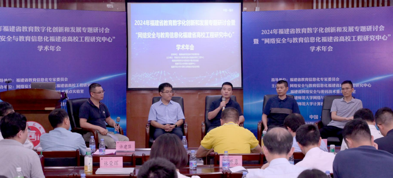 6月29日,2024年福建省教育数字化创新和发展专题研讨会暨“网络安全与教育信息化福建省高校工程研究中心”学术年会在我院举办,本次会议由网络安全与教育信息化福建省高校工程中心、福建省网络安全与密码技术重点实验室、福建师范大学网络与数据中心、福建师范大学计算机与网络空间安全学院共同主办。福建省教育管理信息中心主任张杰,华东师范大学信息网络与数据中心主任沈富可教授,厦门大学系统与控制中心主任洪文兴教授,校网络与数据中心主任辛承南,学院领导许力、许建萍,以及省内外高校院所专家学者、企事业单位代表和我院师生代表参加了会议,专题演讲和圆桌会议分别由工程中心常务副主任范新民、副主任林木辉主持。