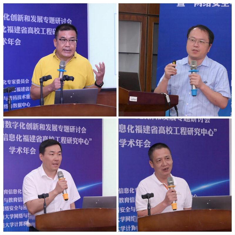 在专题演讲环节,华东师范大学信息网络与数据中心主任沈富可教授,厦门大学系统与控制中心主任洪文兴教授,福建省教育管理信息中心副主任陈奕飞高级工程师,福建林业职业技术学院现代教育技术中心副主任范有福副教授,分别作了题为《遵循第一性原理,推动教育数字化新突破》《产教融合,提升数字人才核心能力》《教育网络安全威胁及防护案例解析》《立足闽北山区,扎实推进数字校园建设》的报告。